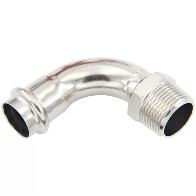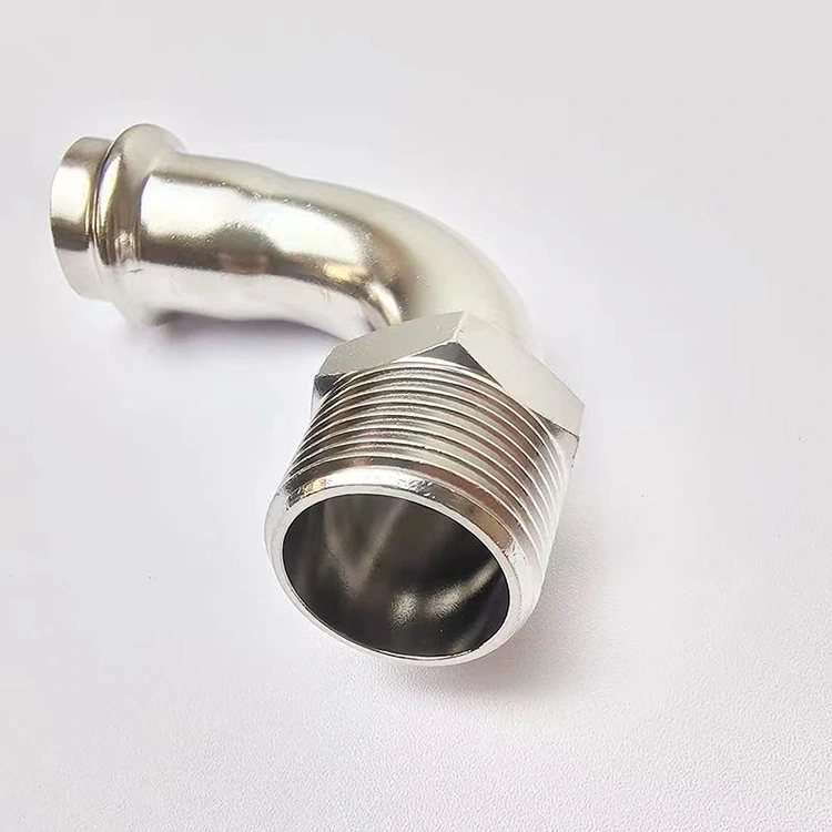 이는 "유압 공구를 사용하여 한 번의 작업으로 한쪽 끝을 스테인레스 스틸 파이프에 누르고 다른 쪽 끝은 다양한 암나사 인터페이스에 나사로 고정하는 데 사용되는 돌출된 수나사인 엘보 피팅"으로 이해될 수 있습니다. 스테인레스 스틸 배관 시스템의 단자 연결 및 회전을 위한 핵심 변환 구성 요소입니다.